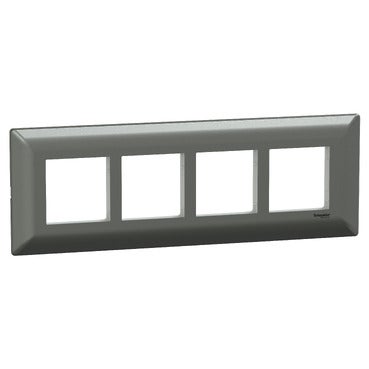Livia cover frame by Schneider electric is a horizontal surface mounted fixing accessory having 8 gangs. This device is designed to be surface mounted. The dimensions of the product are (W) 251mm x (H) 88mm x (D) 13mm. It is made of Polycarbonate (PC). The color of the product is grey with a matt surface finish and anti-bacterial surface treatment. It reaches IP20 and IK02 degree of protection. LIVIA - Switch to the extra-ordinary, is a Anti-bacterial Range, features Sleek Design of 2.7mm thin plate with curved body to minimize dust accumulation, having Stylish looks with Soft white texture and Glossy finish. LIVIA products are Easy to Install, Green & Eco Friendly, RoHS compliant, Reliable, Robust and Strong.