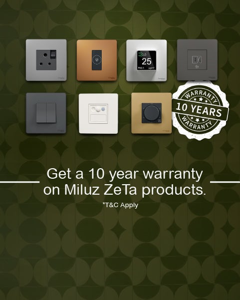| MZSW101M1W_WH | Miluz ZeTa | Switch 10A 1 Way 1 Module | White | 3 No. |